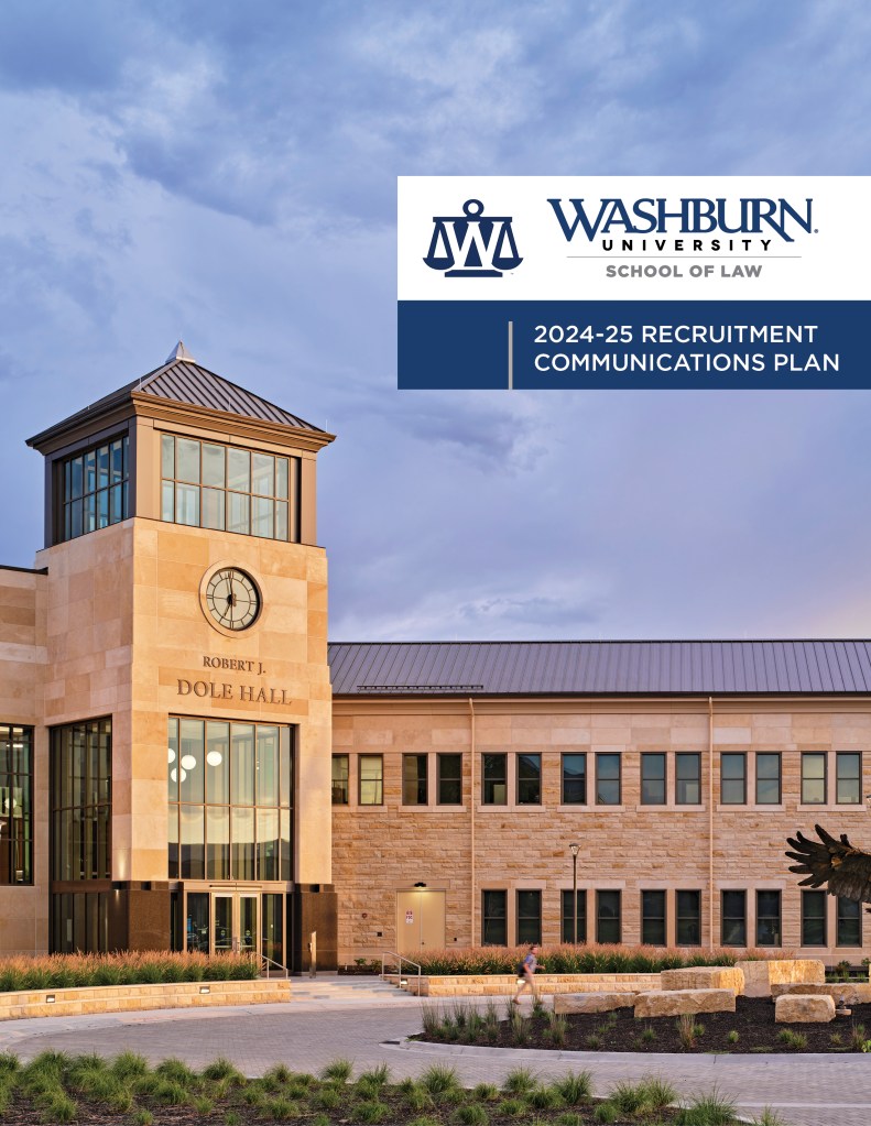 Washburn University School of Law’s 2024-25 Recruitment Communications Plan outlines a dynamic strategy aimed at increasing the institution’s visibility, attracting high-quality applicants, and expanding the law school’s national presence. Key components include targeted digital advertising, email and text messaging campaigns, content marketing, and robust social media engagement. Through visually appealing print materials, strategic use of rankings, and a focus on unique programs like the Spring Start option, this plan is designed to meet the needs of prospective students while showcasing the personalized, high-quality legal education Washburn Law offers. Read the full plan to learn how these efforts shaped the overall recruitment cycle.