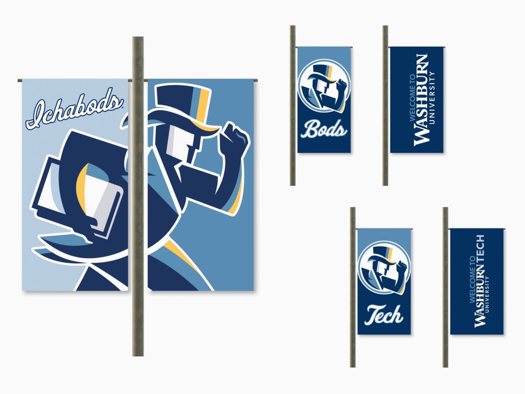 In addition to strategic planning and outside my role at the law school, I created several new materials designed to embed the brand’s new look and feel across campus and beyond. This effort included the creation of light pole banners set to line the main campus, the tech campus, and major roads throughout Topeka, giving the university’s presence a visual boost.